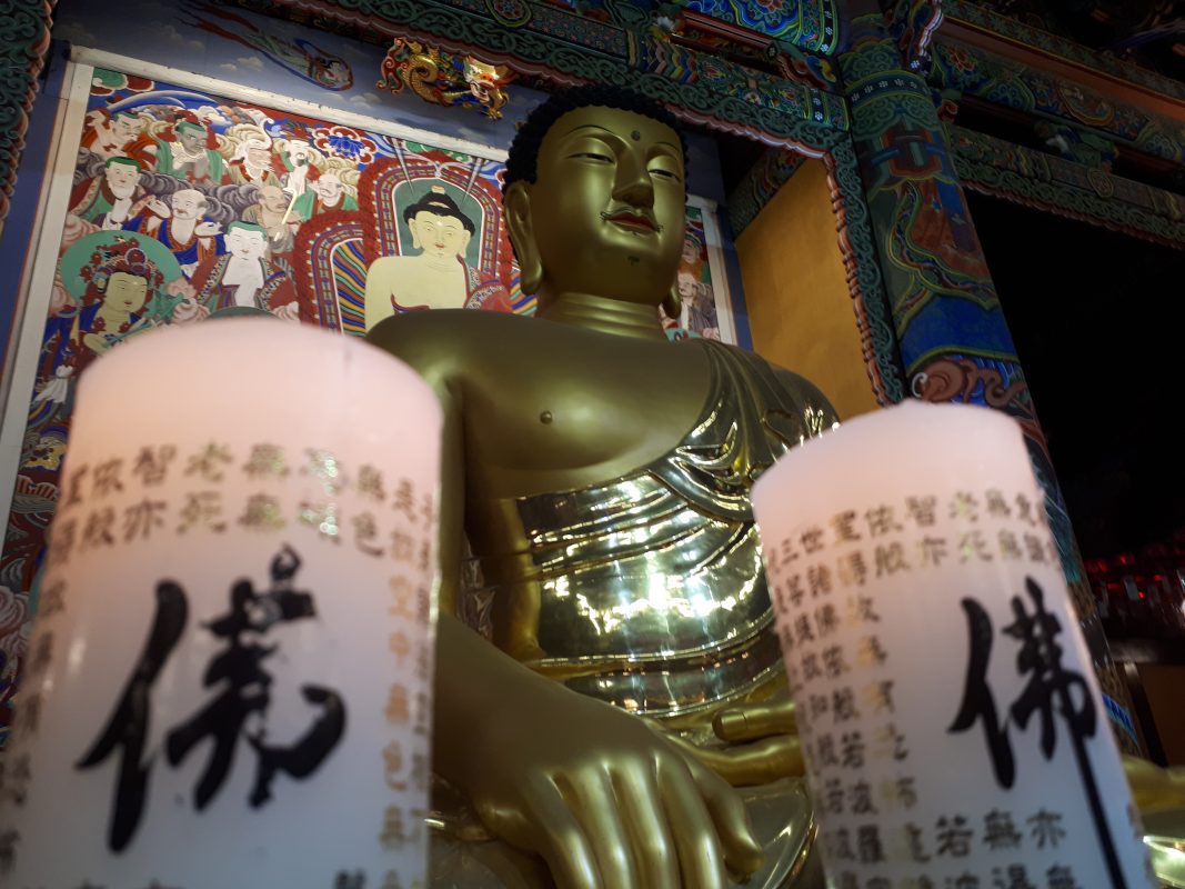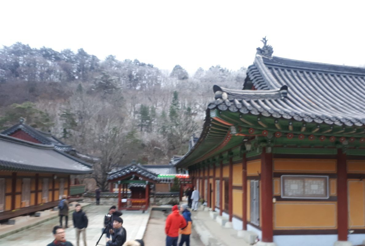 Le temple Woljeongsa, classé au patrimoine mondial de l'UNESCO, est situé à PyeongChang, en Corée du Sud. Le temple abrite une pagode octogonale en pierre de neuf étages, un bodhisattva assis en pierre et le Jeongmyeolbogung, qui renferme les reliques du Bouddha historique.
